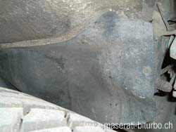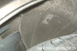 die Muttern des Haltebügels im rechten Radkasten. |